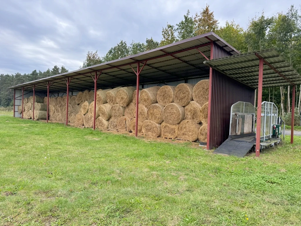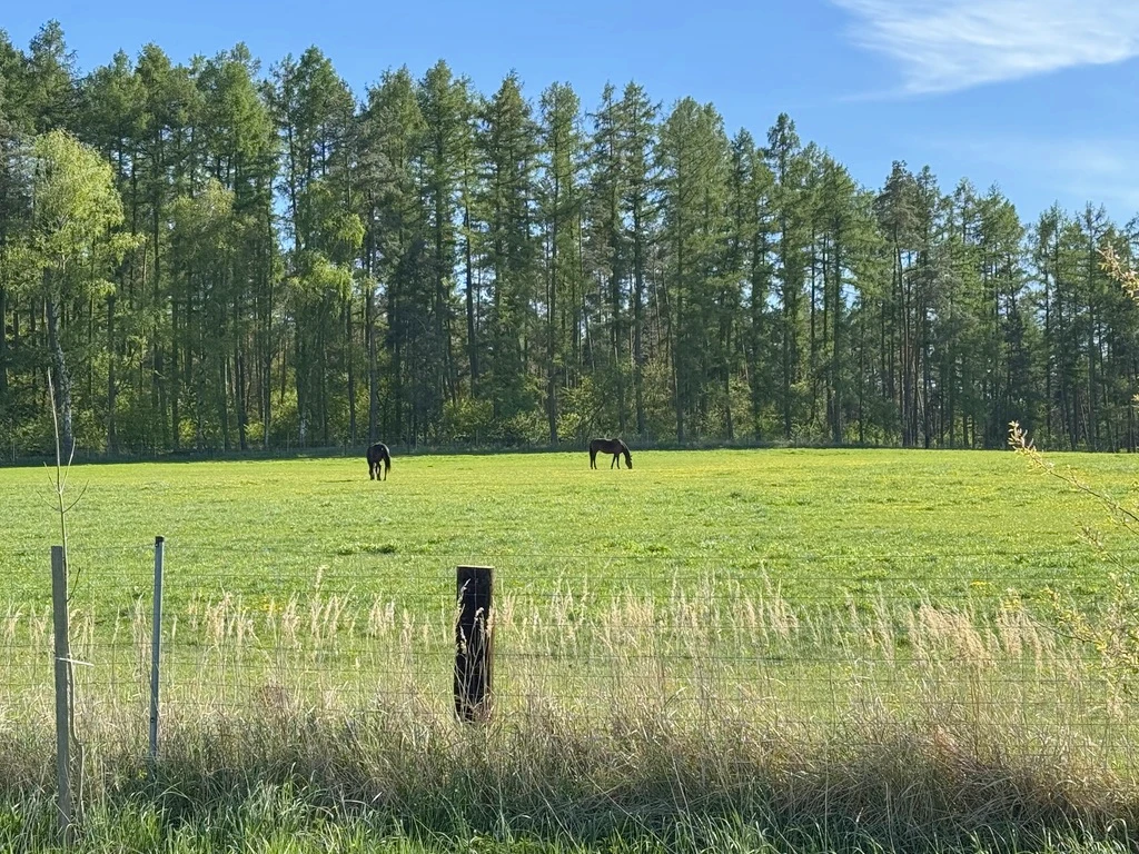 Mit einer Gesamtfläche von 104.500 m² (10,45 ha) und unmittelbarem Zugang zum Wald, eröffnet dieses Grundstück vielfältige Nutzungsmöglichkeiten – vom Reitbetrieb bis zum privaten Naturparadies. Die Zufahrt zum Haus ist vollständig gepflastert und verläuft über ca. 300 Meter vom Haupteingang, was für Ruhe und Privatsphäre sorgt.