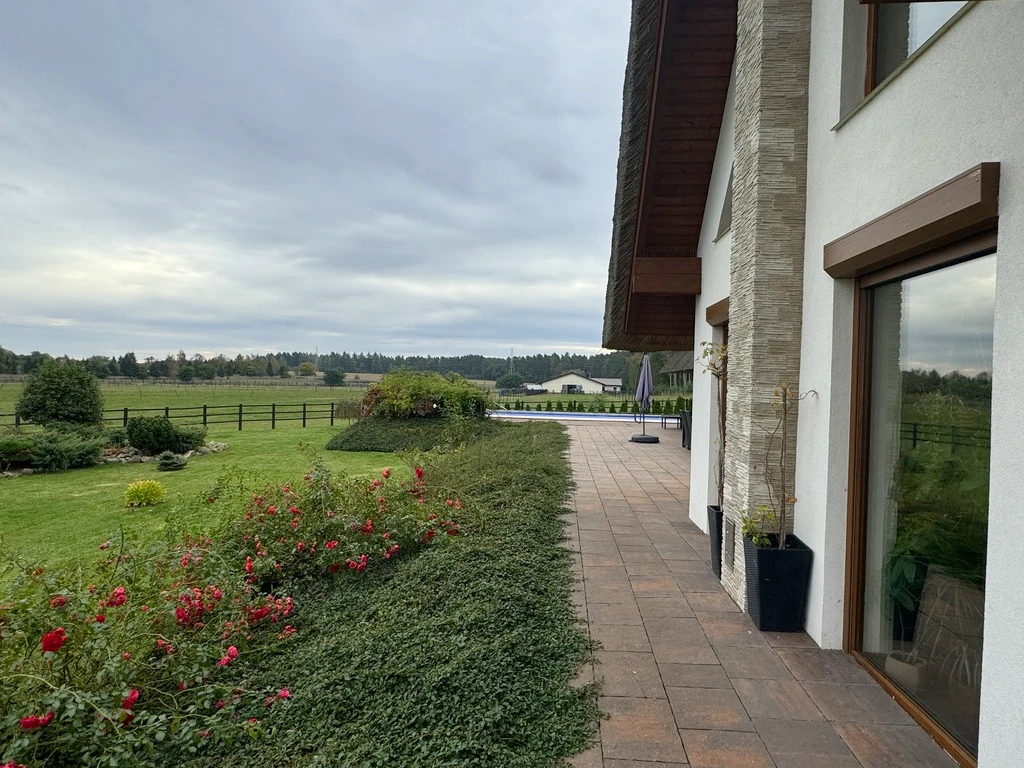 Außengelände: - Stilvoll angelegter Gartenbereich mit Pool - Separater landwirtschaftlicher Bereich mit Weiden und Reitflächen: - 2 große Weiden (ca. je 2 ha) - 8 mittlere Paddocks - 3 kleinere Ausläufe - Einfahrt mit befestigtem Vorplatz direkt an der Straße Nr. 108 - Gepflasterte Wege zu Wohnhaus und Stallgebäude