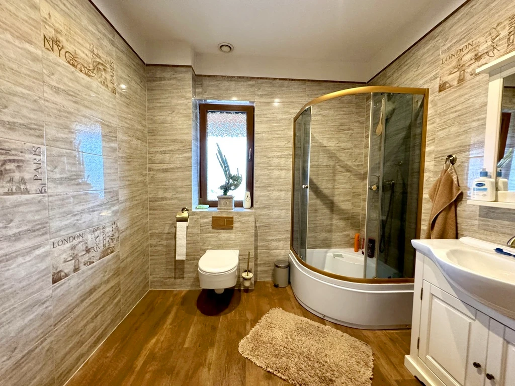 Ausstattung: - Fußbodenheizung & Heizkörper in Schlafzimmern - Heizsystem mit Wärmepumpe und Wärmerückgewinnung (Rekuperation) - Angenehm temperierter Kamin für zusätzliche Gemütlichkeit - Direkter Zugang zur großzügigen, gepflasterten Terrasse - Angrenzender Poolbereich mit fest installiertem, beheiztem Pool (48 m²) und modernem Filtersystem