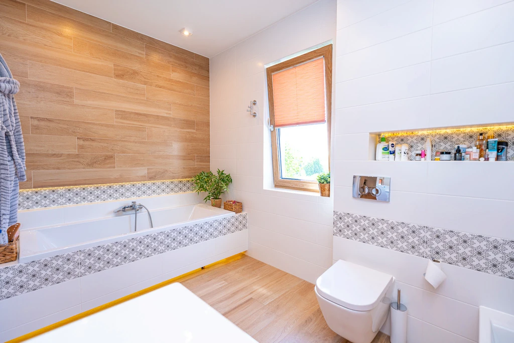- Helles Badezimmer mit Badewanne, Bidet und WC