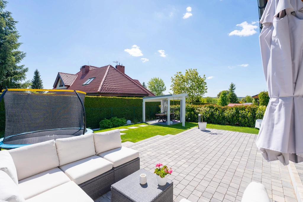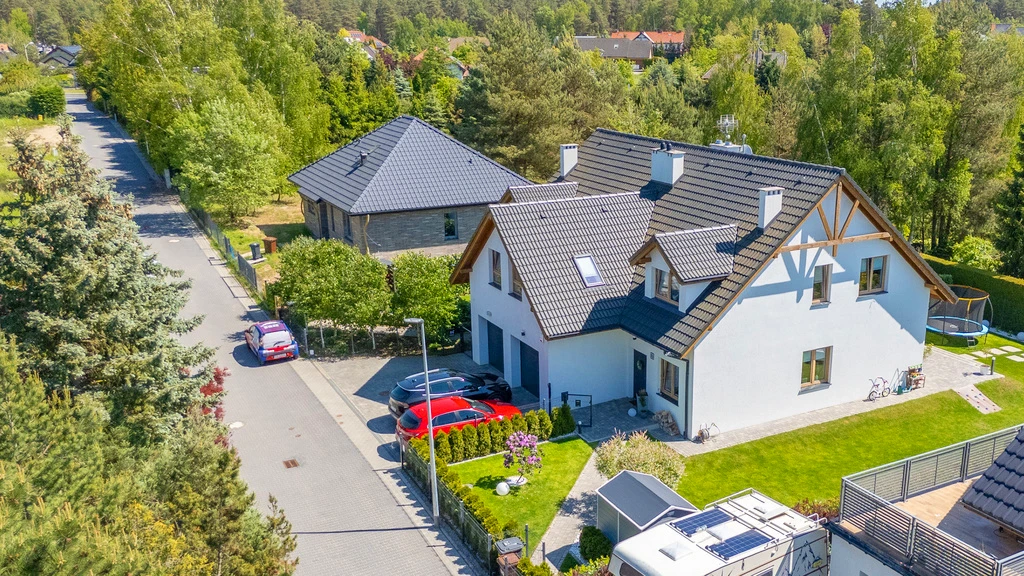 Das Haus liegt in einer familienfreundlichen und ruhigen Wohngegend von Dobra, umgeben von Natur und Spazierwegen. Gleichzeitig erreichen Sie das Stadtzentrum von Stettin bequem mit dem Auto oder öffentlichen Verkehrsmitteln. Einkaufsmöglichkeiten, Schulen und Kindergärten befinden sich in der Nähe.