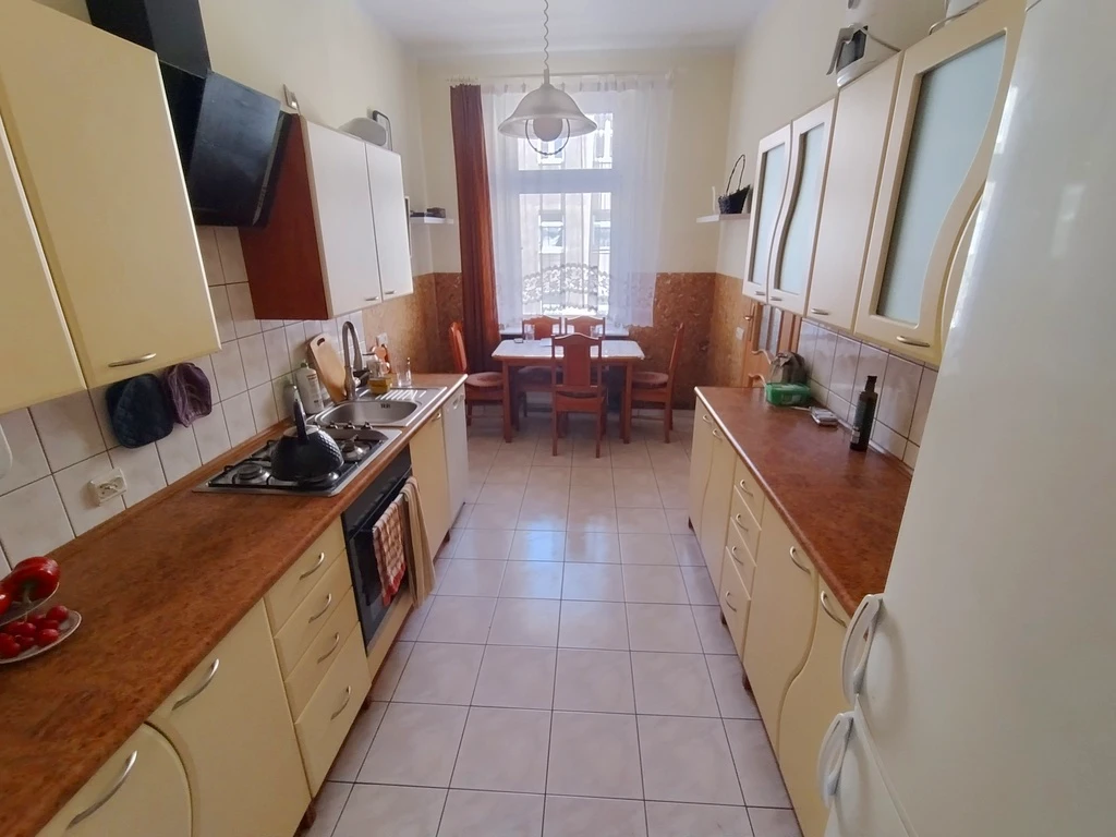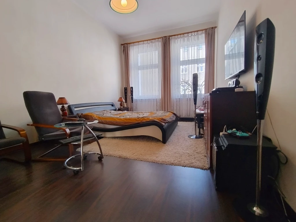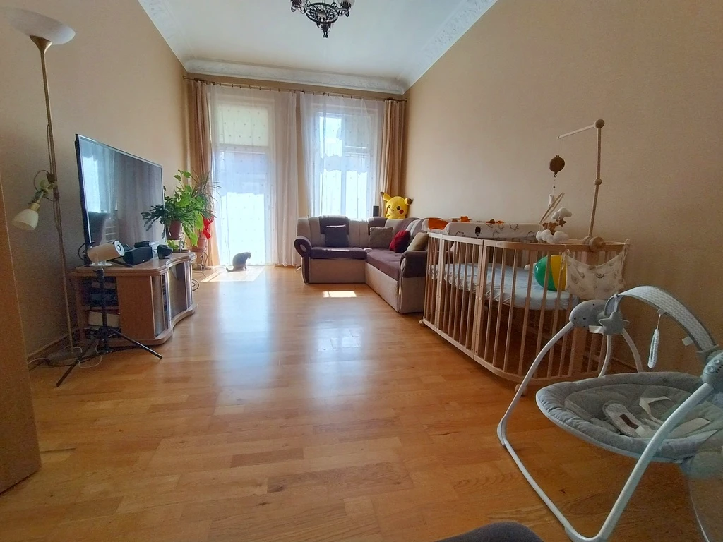 Die Wohnung mit einer Fläche von ca. 88 m² liegt im 2. Obergeschoss eines stilvollen und gepflegten Altbaus mit frisch renovierter Fassade und sauberem Treppenhaus. Das Innere des Apartments ist gemütlich, durchdacht geschnitten und hell – ideal für Familien oder Menschen, die großzügige Räume und urbanes Flair schätzen. Die Wohnung ist zentral gelegen im Gebäude, wodurch sie angenehm warm bleibt. Die Räume sind vollständig getrennt zugänglich, was eine hohe Funktionalität garantiert. Hohe Decken und große Fenster sorgen für viel Tageslicht in der ganzen Wohnung.