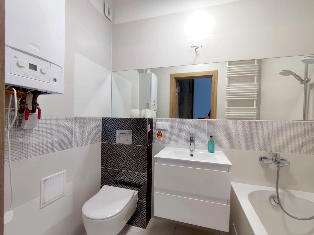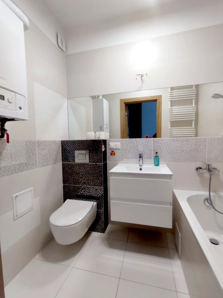 - Pierwsze zdjęcie w naszej galerii zostało lekko zmodyfikowane, aby pokazać, jak nieruchomość mogłaby wyglądać – na przykład po zmianie koloru ścian. Kolejne zdjęcia przedstawiają rzeczywisty stan nieruchomości.