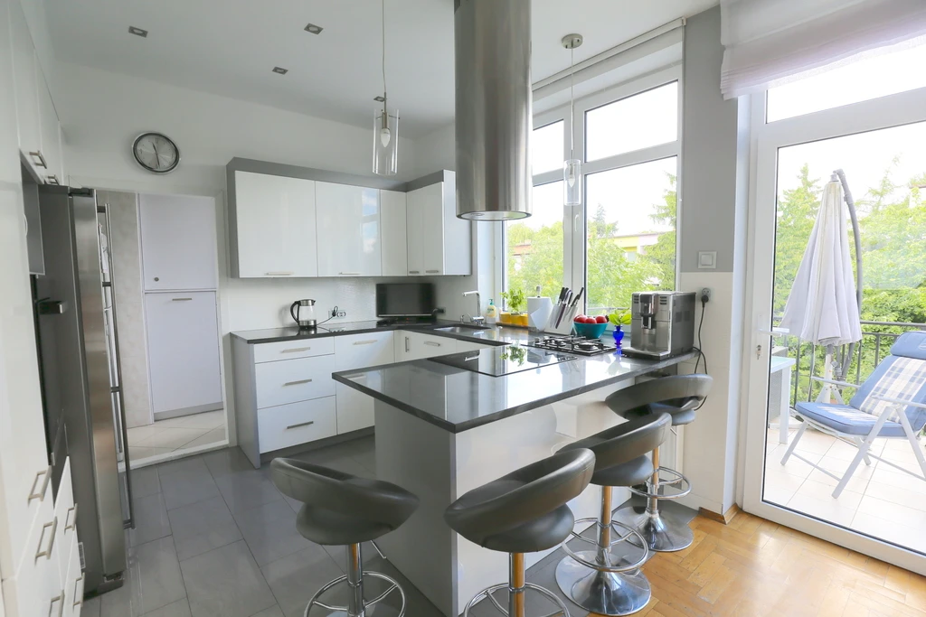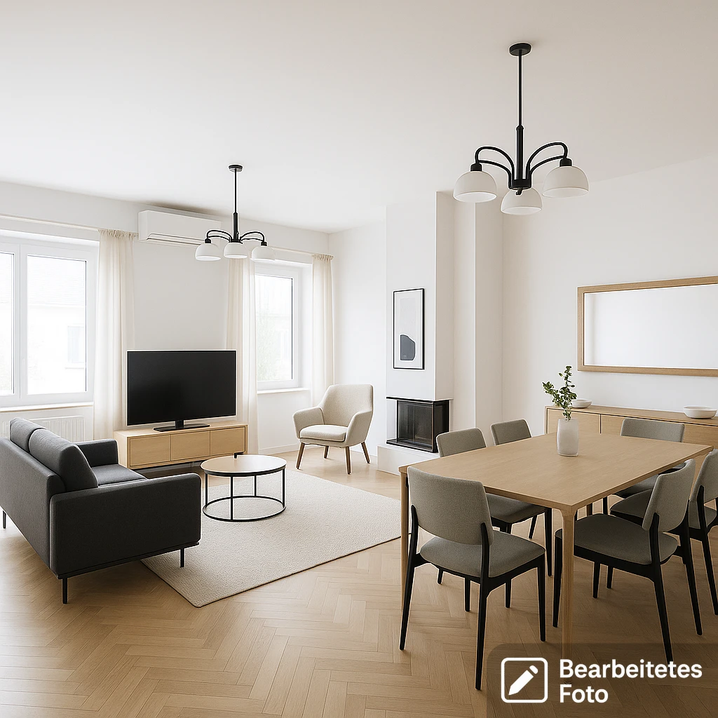 - Hochwertige Haushaltsgeräte (Kühlschrank, Spülmaschine, Waschmaschine, Herd, Backofen, Mikrowelle)