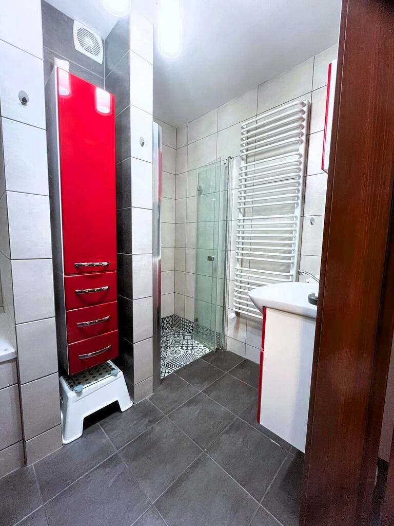 - Ausstattung: Badewanne, Waschbecken, Dusche, WC, Waschmaschine