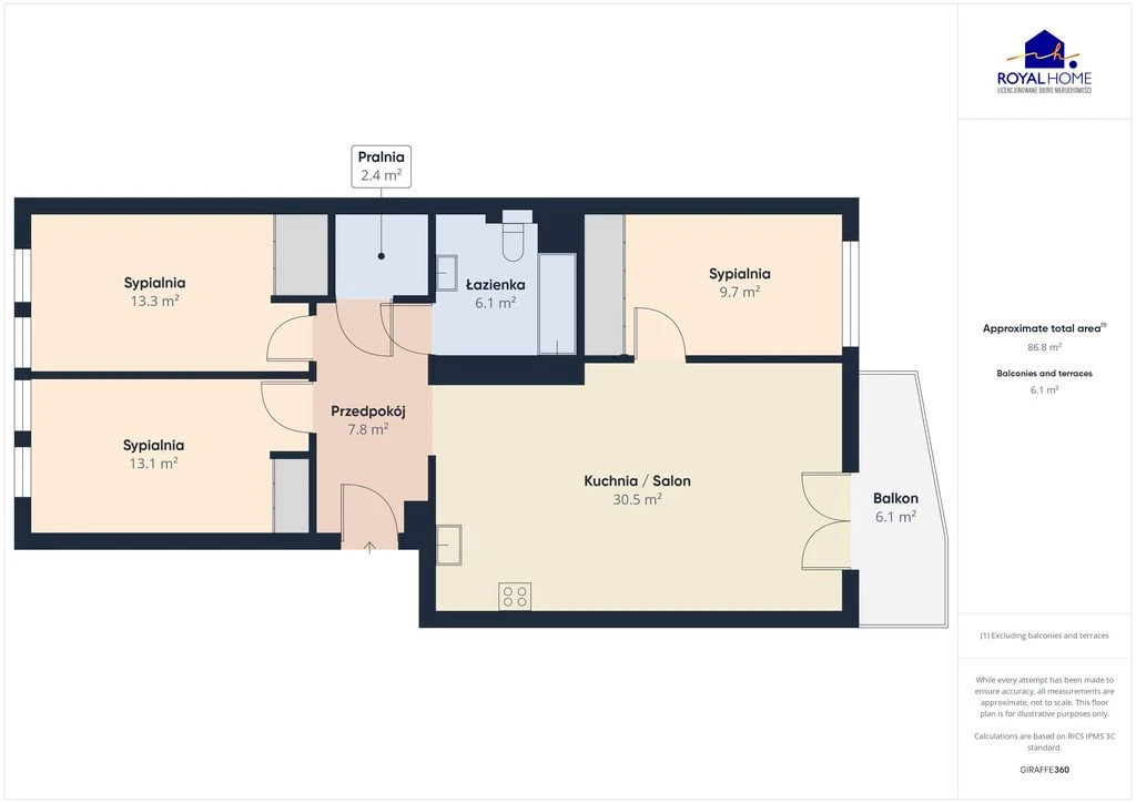 - Gesamtfläche: 86,50 m²