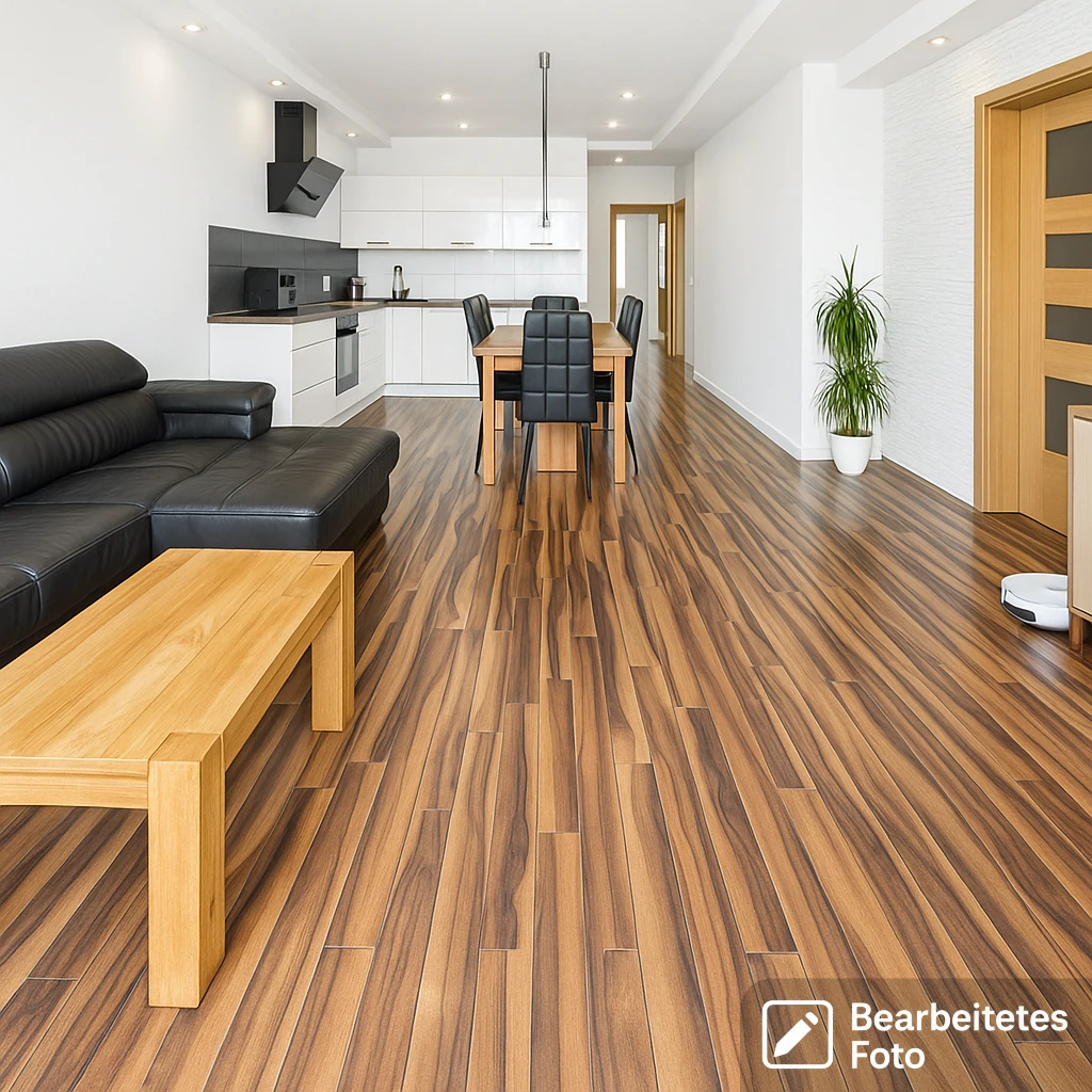 - Fußbodenbeläge: Laminat, Fliesen (Terrakotta)