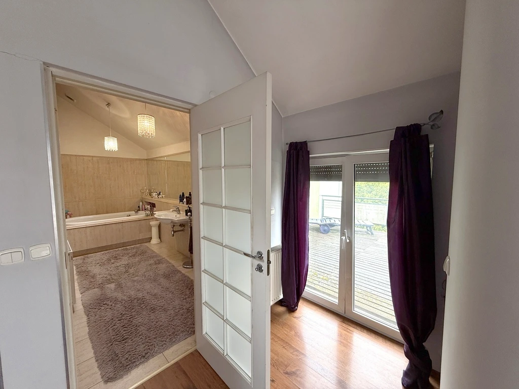 Dank über 20 Fenstern – darunter große PVC-Fenster und hochwertige Dachfenster aus Holz – wird jede Ecke der Wohnung mit natürlichem Licht durchflutet. Bereits am frühen Morgen entsteht eine warme, einladende Atmosphäre. Besonders hervorzuheben ist das Fehlen eines direkten Gegenübers – keine Fenster-Fenster-Situation – was zusätzlichen Wohnkomfort und Privatsphäre garantiert.