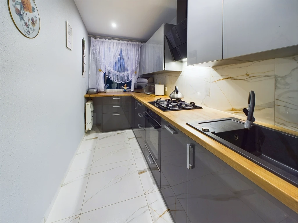 - Pierwsze zdjęcie w naszej galerii zostało lekko zmodyfikowane, aby pokazać, jak nieruchomość mogłaby wyglądać – na przykład po zmianie koloru ścian. Kolejne zdjęcia przedstawiają rzeczywisty stan nieruchomości.