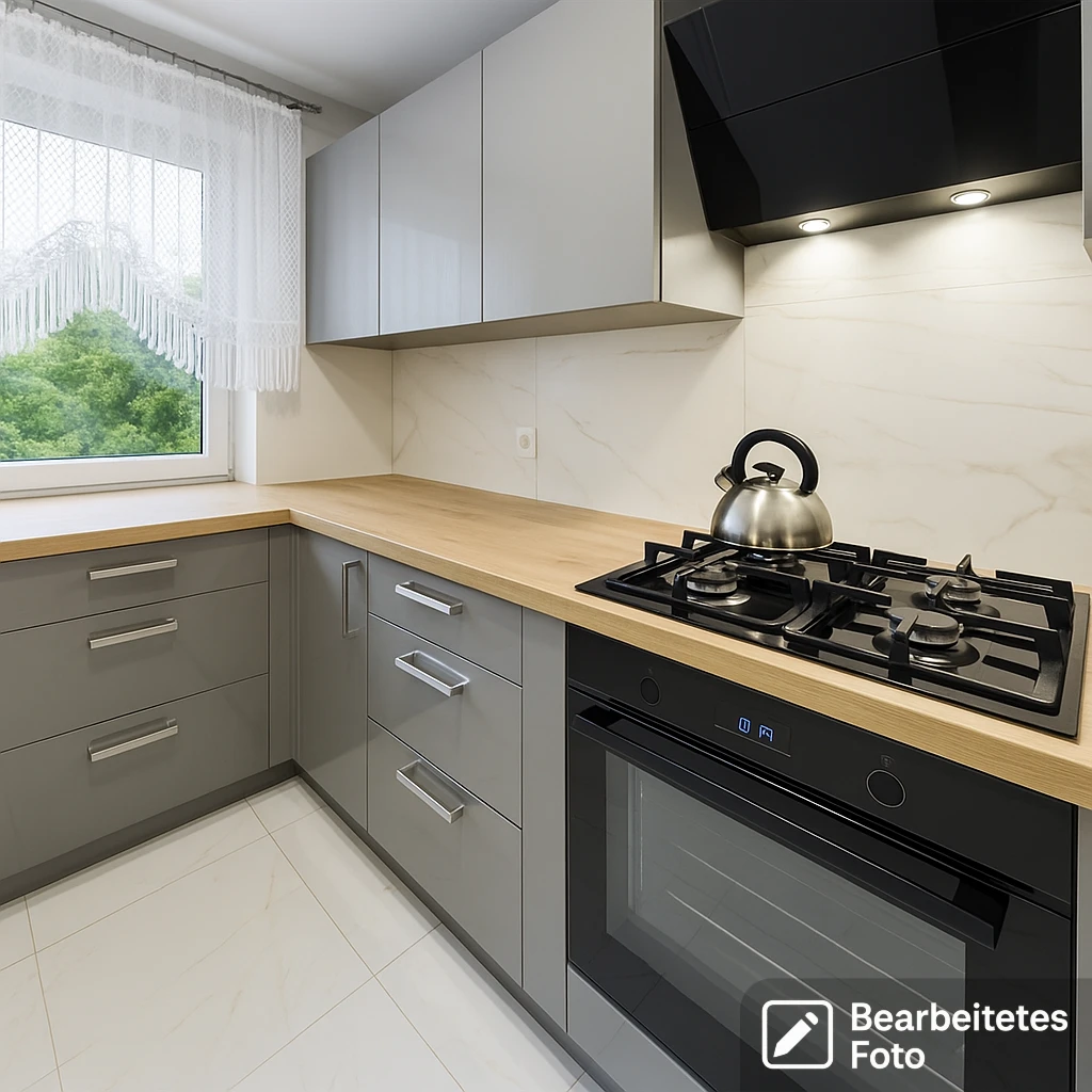 - Küche: Funktional geplant, mit Kücheninsel oder kompletter Einbauküche – ausreichend Stauraum und Platz fürs Kochen in angenehmer Atmosphäre.