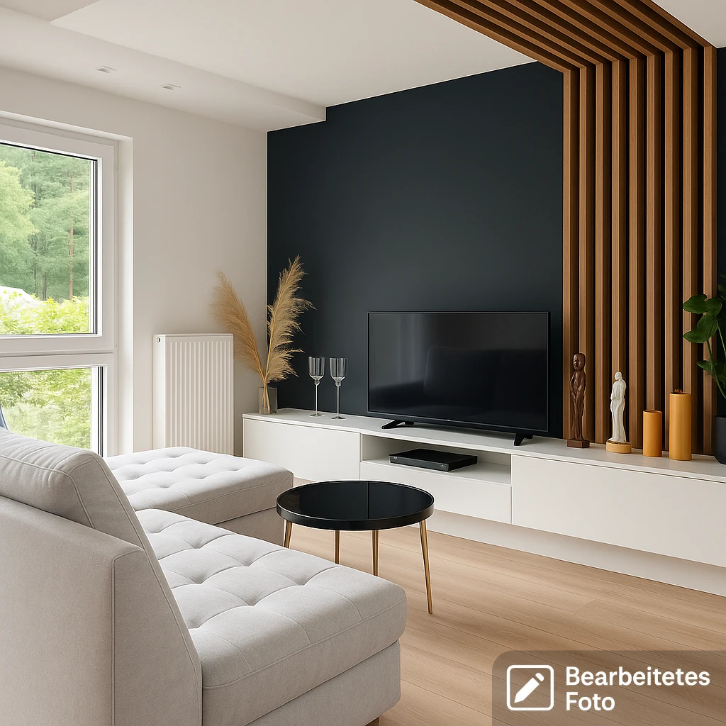 Im Kaufpreis enthalten sind zahlreiche hochwertige Einbauten. Die maßgeschneiderte Küche ist mit modernen Elektrogeräten ausgestattet (u.a. Kühlschrank, Backofen, Geschirrspüler). Besonders hervorzuheben sind die stilvolle Innenraum-Tischlerarbeiten sowie eine exklusive Wandgestaltung mit hochwertigem Sichtbeton, die dem Haus eine besondere Note verleihen.