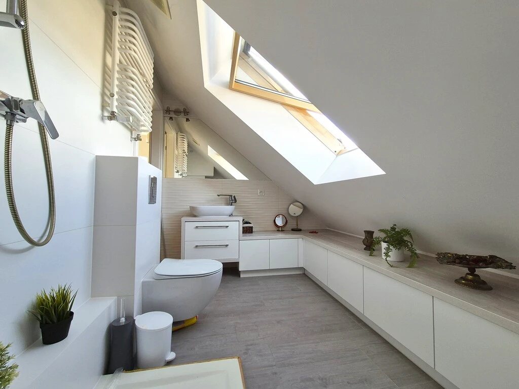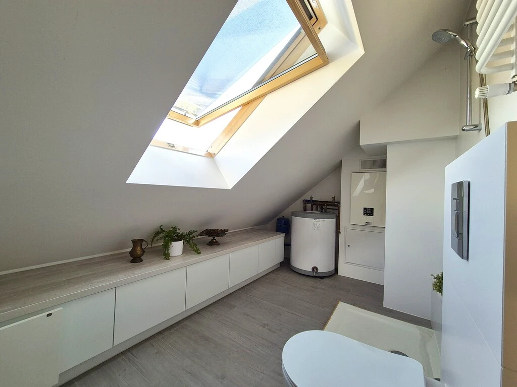 Das Haus wurde 2018 in klassischer Massivbauweise aus Silikatziegeln errichtet und zusätzlich gedämmt. Hochwertige dreifach verglaste Fenster und ein gut isoliertes Blechdach (30 cm Mineralwolle) sorgen für exzellente Energieeffizienz. Die Beheizung sowie Warmwasserversorgung erfolgt über einen modernen, energiesparenden Gas-Brennwertkessel der Marke Wolf mit separatem Warmwasserspeicher – eine kosteneffiziente Lösung fürs ganze Jahr.
