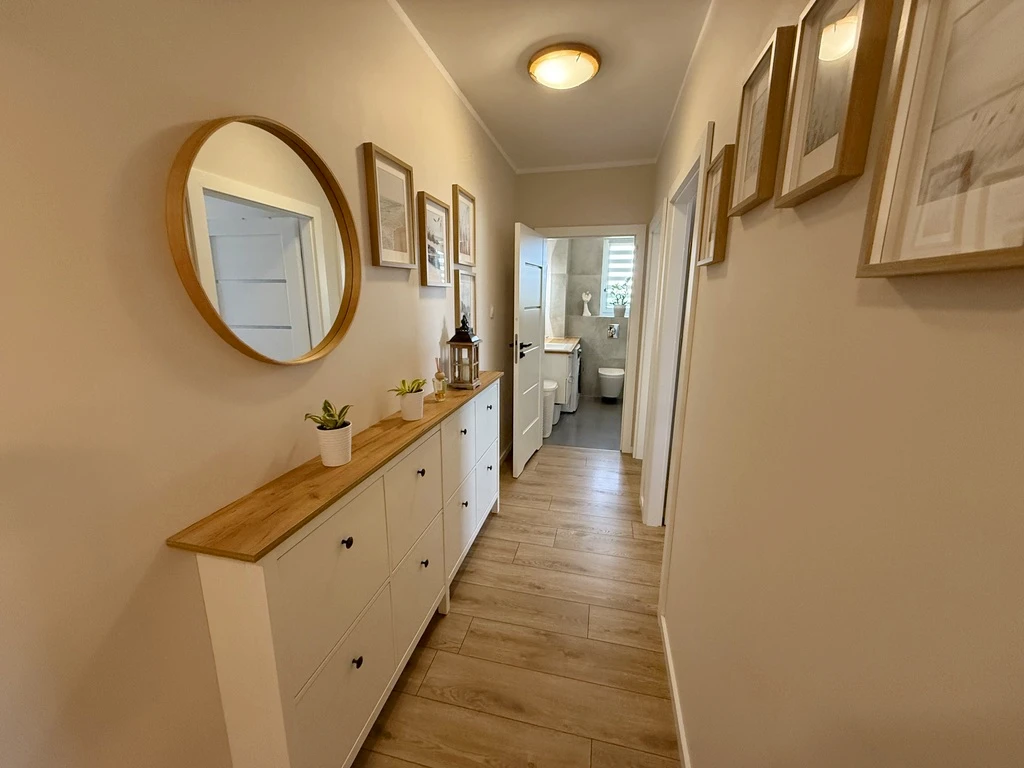 Diese stilvoll eingerichtete Wohnung mit einer Fläche von 70,18 m² befindet sich im zweiten Obergeschoss eines modernen Mehrfamilienhauses in einer der begehrtesten Lagen von Stettin – in der Neustadt. Die Adresse vereint urbanen Komfort mit ruhiger Wohnatmosphäre und hervorragender Verkehrsanbindung: nur 1,5 km bis zum Brama Portowa, mit direktem Zugang zu Straßenbahn, Pkw und Fußwegen.