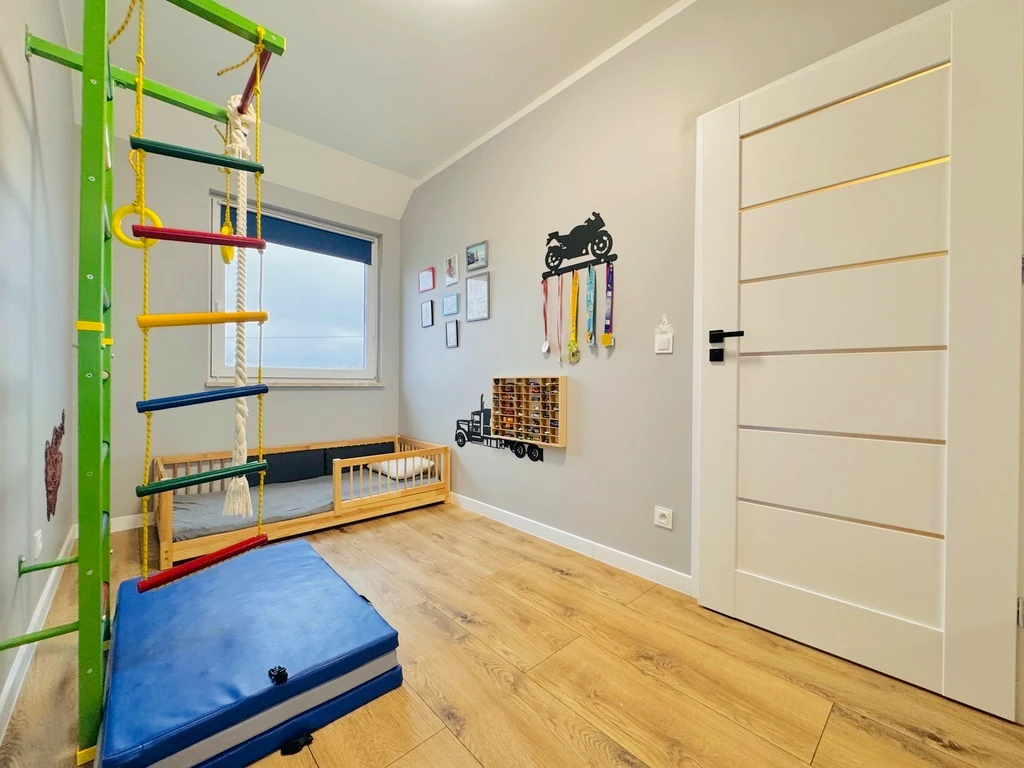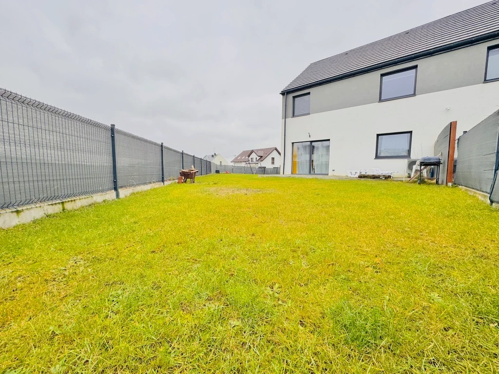 Zum Verkauf steht ein moderner, im Jahr 2022 errichteter Doppelhaushälften-Endteil in Warzymice – eine charmante Wohngegend mit schneller Anbindung an Stettin und angrenzender Infrastruktur wie Schulen und Kindergärten. Die Immobilie befindet sich auf einem ca. 460 m² großen, komplett eingefriedeten Grundstück ohne Dachschrägen – ideal für Familien, die Wert auf Wohnkomfort und Privatsphäre legen.