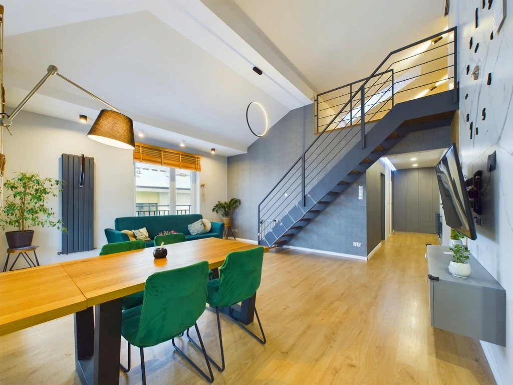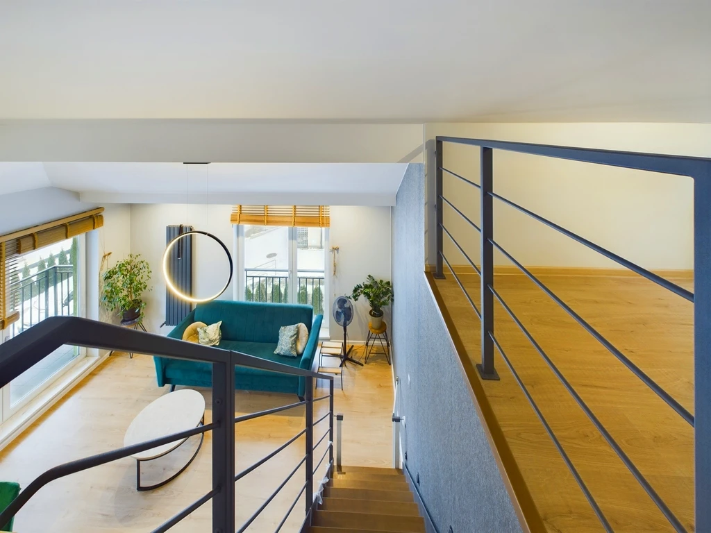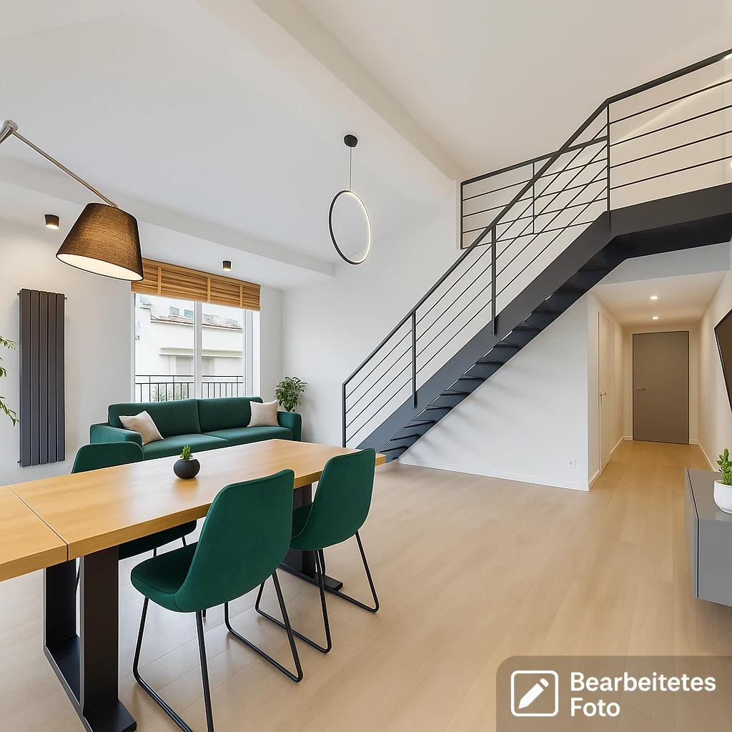 - Heller, offener Wohnbereich mit Küche und Zugang zum sonnigen Balkon