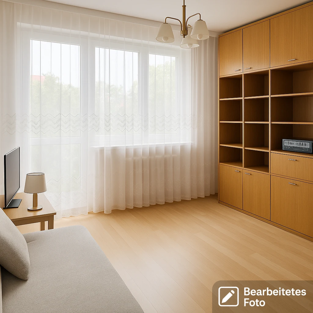 - Zweites Zimmer (ca. 20 m²) – ebenfalls Richtung Westen mit viel Tageslicht