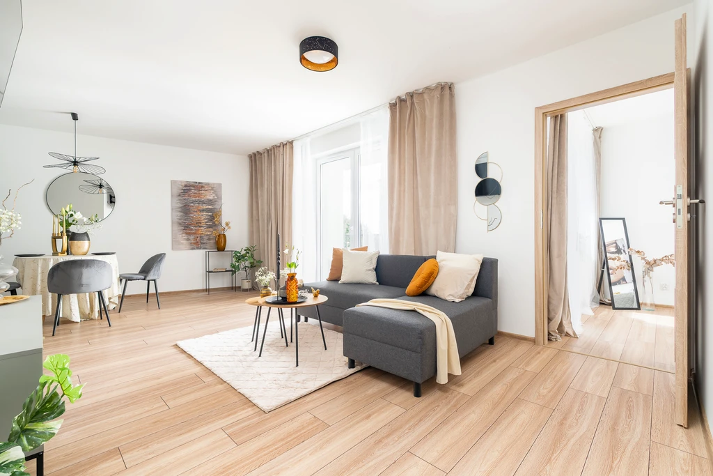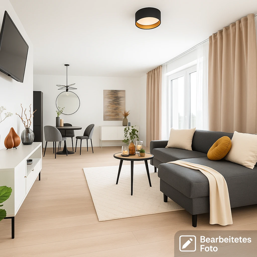 - Helles Wohnzimmer mit offener Küche (ca. 23 m²)