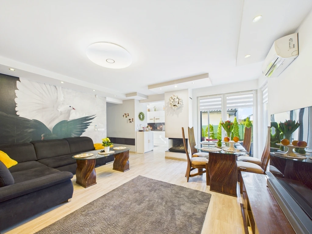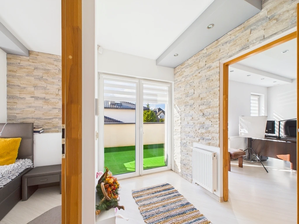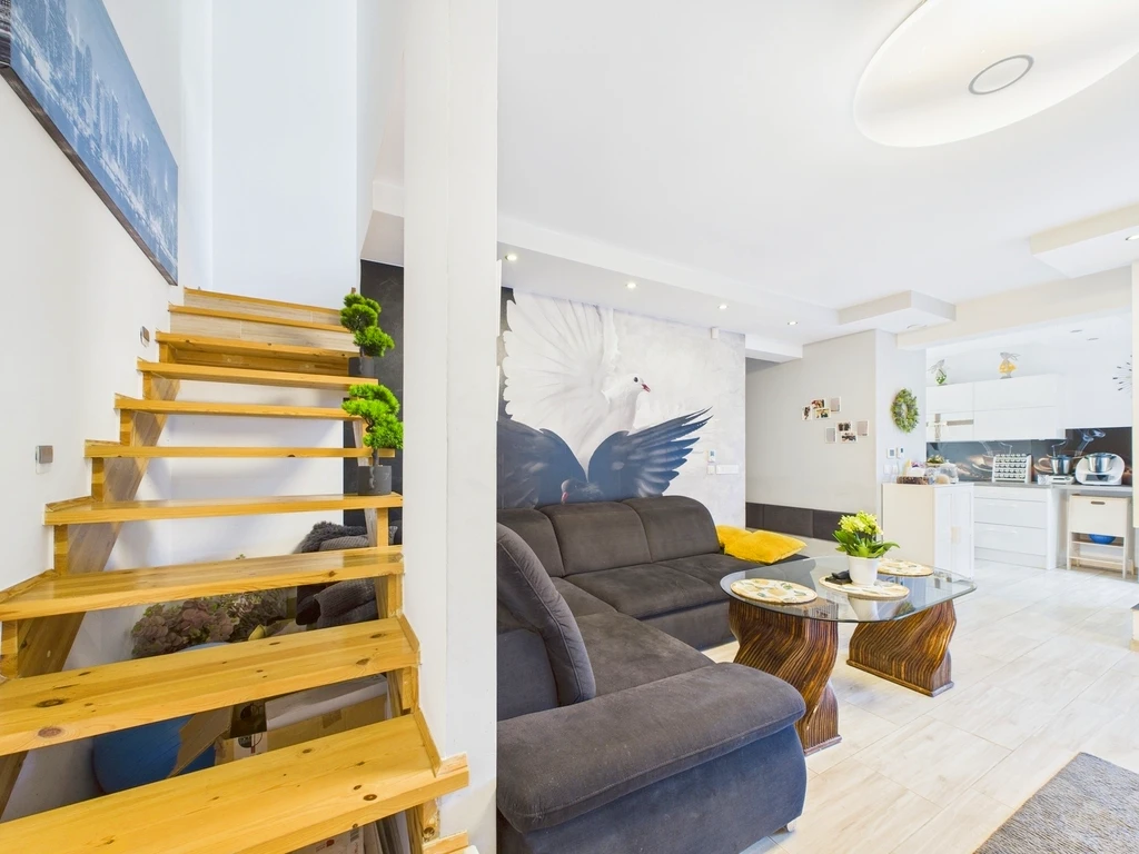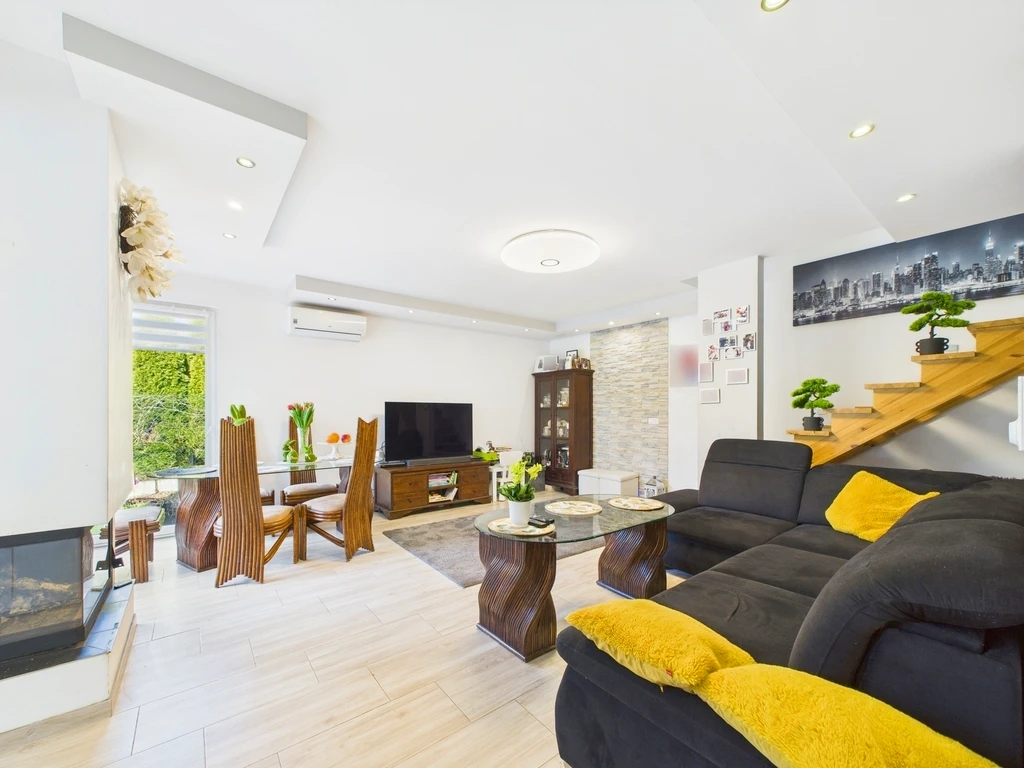 Entdecken Sie dieses stilvolle und gepflegte Zuhause mit einer Wohnfläche von ca. 120 m², gelegen auf einem 280 m² großen, rechteckigen Grundstück in ruhiger Wohnlage von Mierzyn. Das 2016 erbaute Haus bietet ein ideales Wohnkonzept für Familien, die sowohl Grünflächen als auch eine gute Anbindung an das Stadtzentrum schätzen.