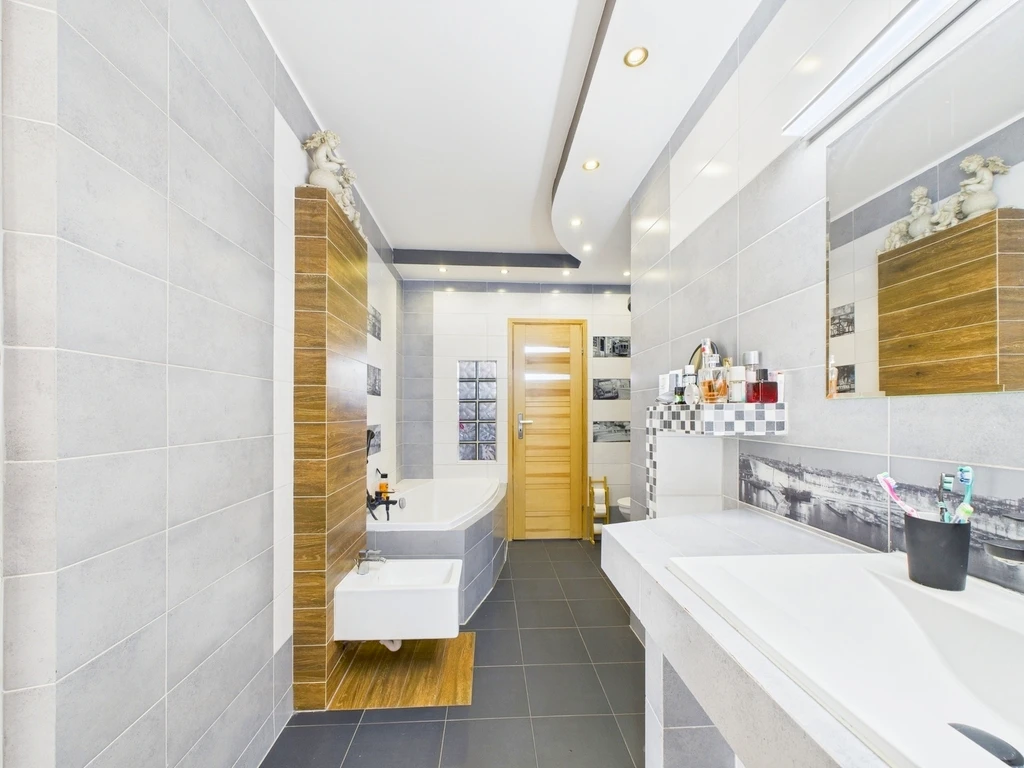 - Pierwsze zdjęcie w naszej galerii zostało lekko zmodyfikowane, aby pokazać, jak nieruchomość mogłaby wyglądać – na przykład po zmianie koloru ścian. Kolejne zdjęcia przedstawiają rzeczywisty stan nieruchomości.