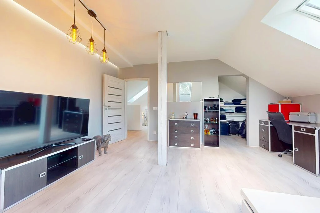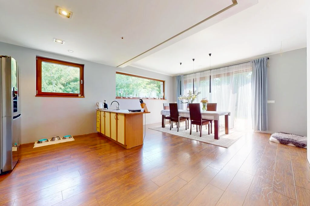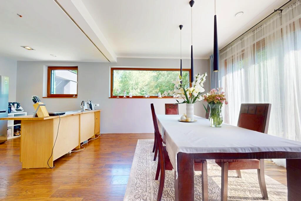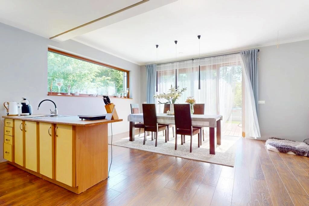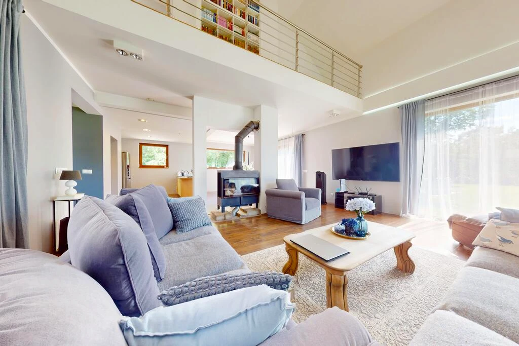Entdecken Sie dieses exklusive und komfortable Einfamilienhaus in ruhiger, grüner Umgebung, nur 100 Meter vom idyllischen Wald entfernt. Die Immobilie liegt in der beliebten und naturnahen Gegend von Wielgowo, ideal für alle, die Ruhe, Naturverbundenheit und dennoch eine gute Anbindung an die Stadt suchen.
