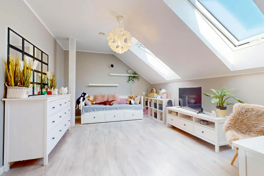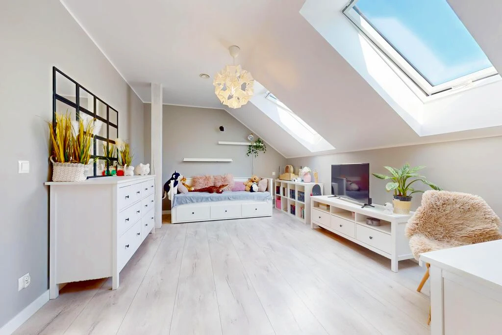 - Pierwsze zdjęcie w naszej galerii zostało lekko zmodyfikowane, aby pokazać, jak nieruchomość mogłaby wyglądać – na przykład po zmianie koloru ścian. Kolejne zdjęcia przedstawiają rzeczywisty stan nieruchomości.