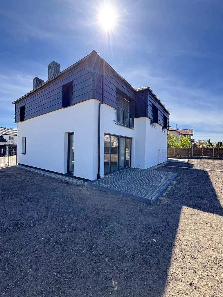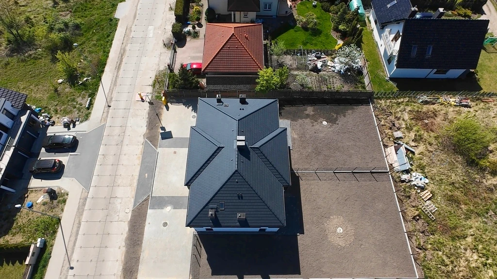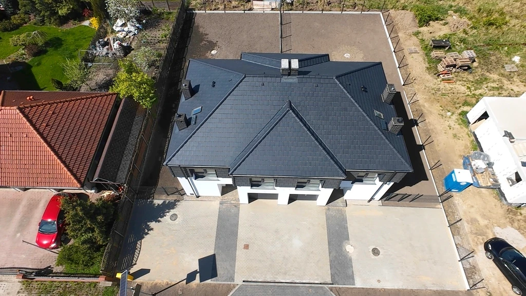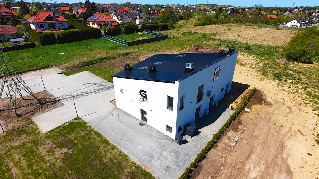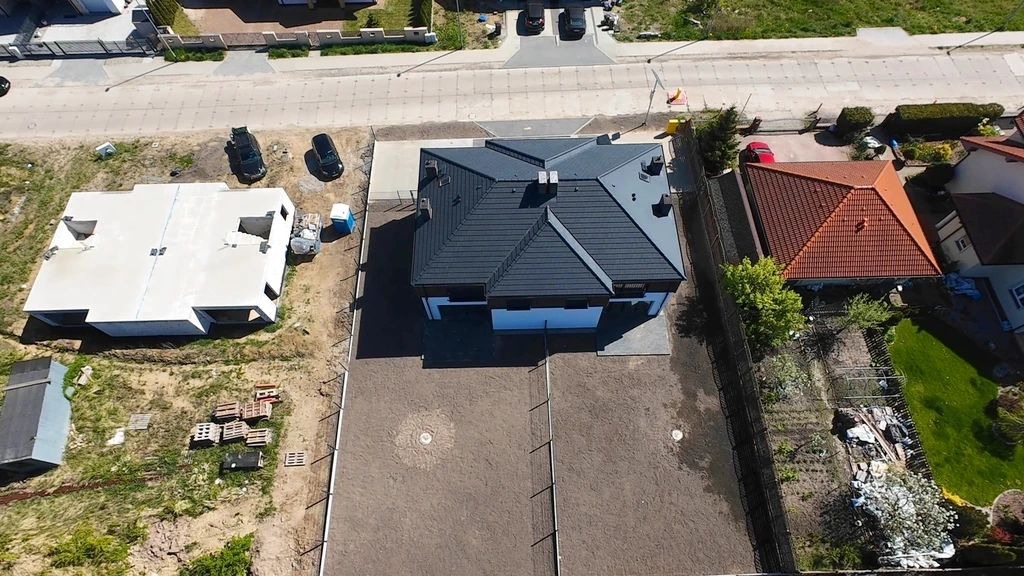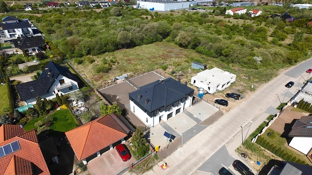 Stellen Sie sich einen Ort vor, an dem Ihre Familie nicht nur wohnt, sondern wirklich lebt – in Harmonie mit der Natur, mit Raum zur Entfaltung und in einem Umfeld voller Ruhe und Sicherheit. Dieses moderne Doppelhaus in Mierzyn bietet all das und noch mehr.