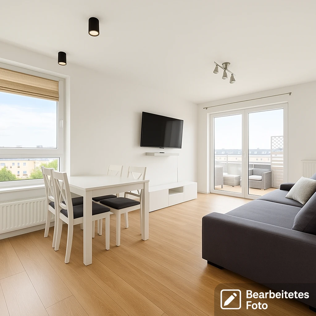 - Helles Wohnzimmer mit offener, voll ausgestatteter Küche und direktem Zugang zu einem geräumigen Balkon – ideal für entspannte Stunden an der frischen Luft