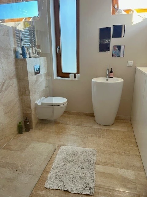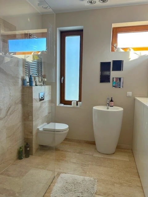 - Zwei elegante Badezimmer, ausgestattet mit Marmor- und Granitoberflächen sowie Fußbodenheizung.
