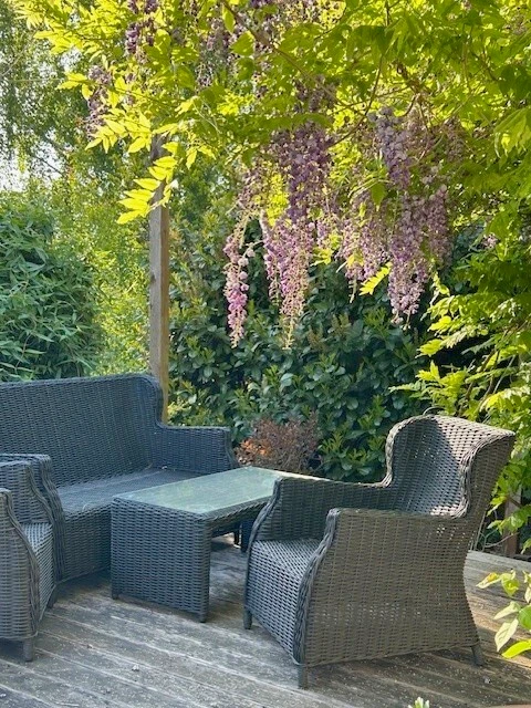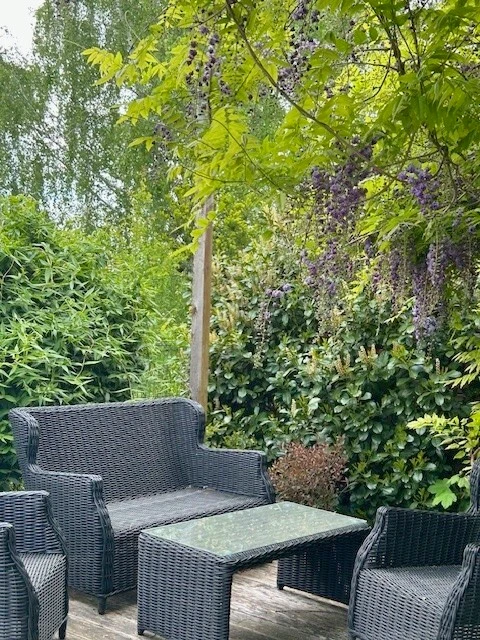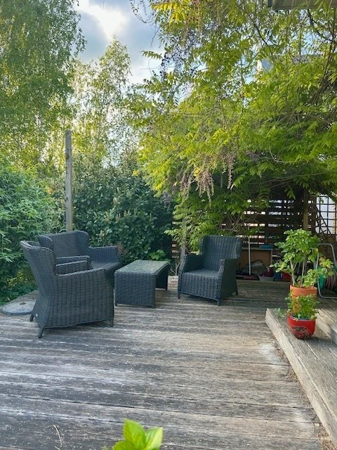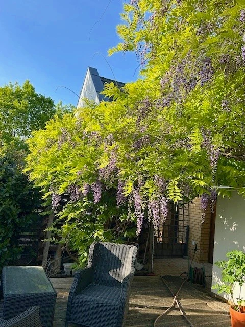 - Geräumiges Wohnzimmer mit direktem Zugang zur Terrasse (40 m²) und zum liebevoll angelegten Garten. Der Garten ist mit einem modernen Bewässerungssystem und Bodenfeuchtesensor ausgestattet.