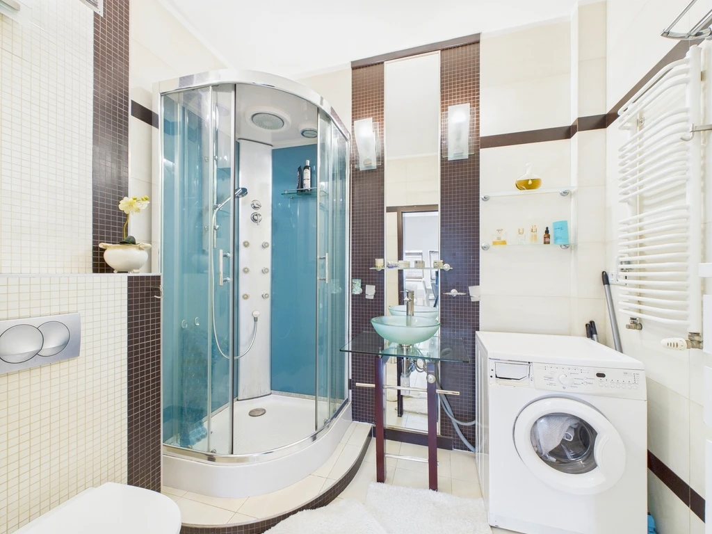 - Badezimmer: 4,6 m² (ausgestattet mit WC, Dusche, Handtuchheizkörper, Waschbecken und Waschmaschine)