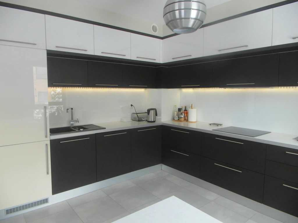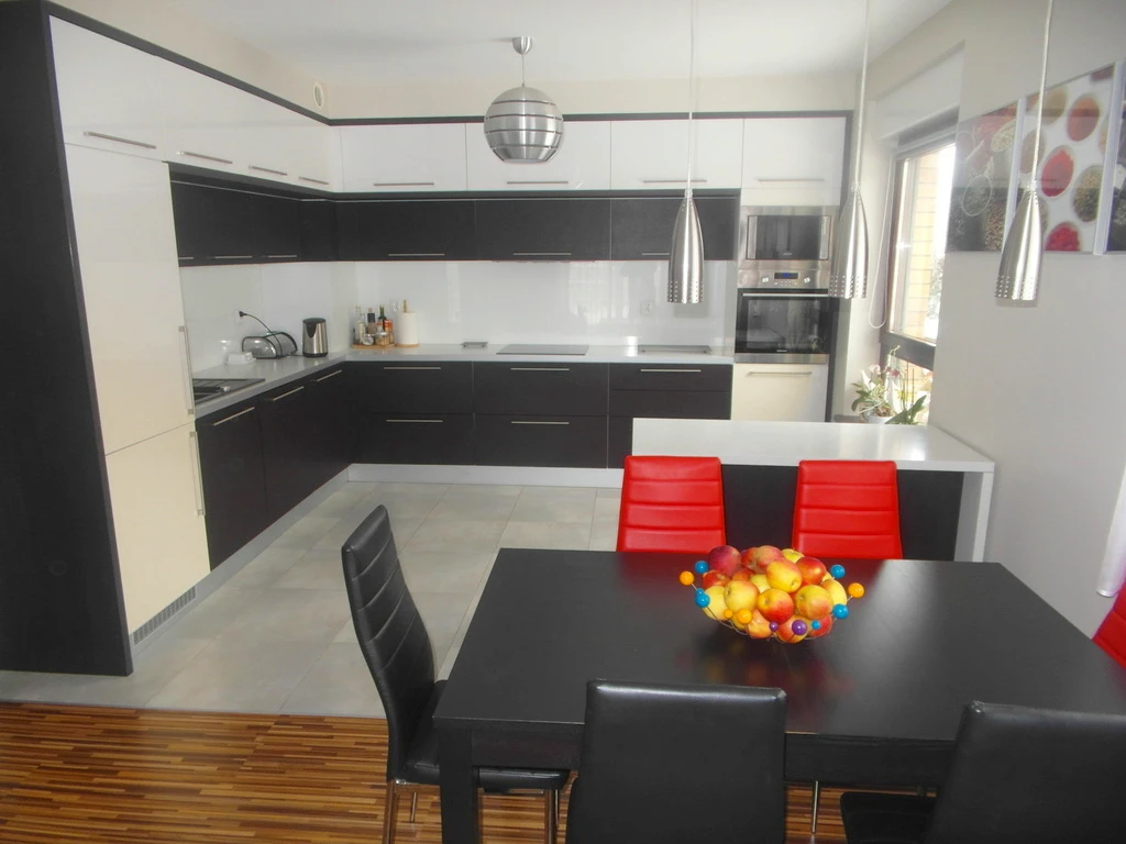 - Küche: Maßgefertigte Einbauküche mit hochwertigen Geräten: Bosch-Kühlschrank, Bosch-Induktionskochfeld, Samsung-Backofen und Mikrowelle, Amica-Geschirrspüler