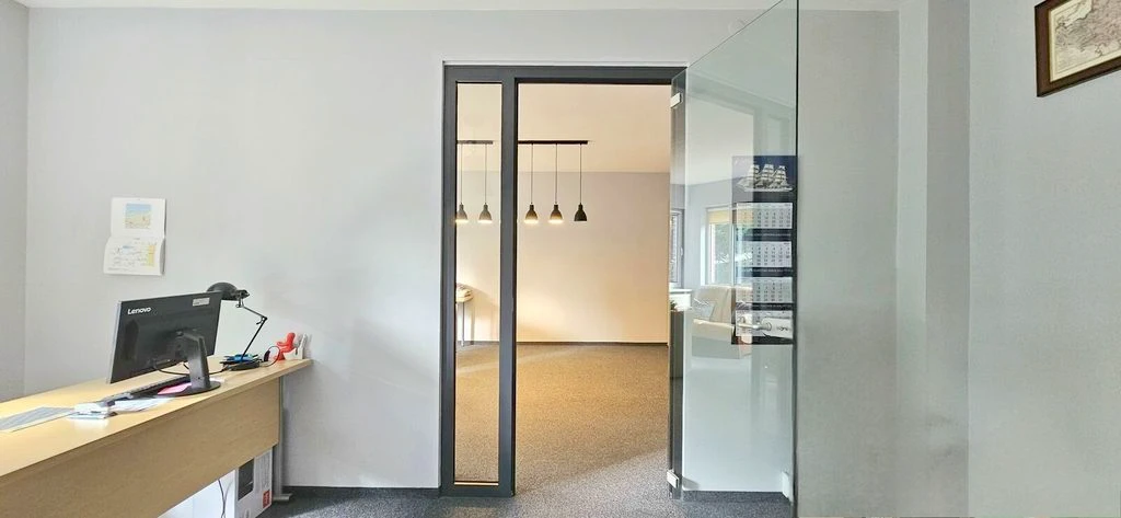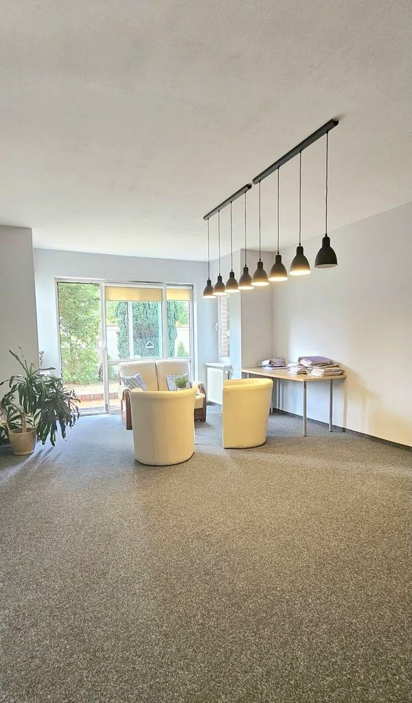 - Heller Wohnbereich mit schönem Durchgang mittels Schiebetüren in das angrenzende Büro oder zweiten Wohnraum – zusammen ca. 40 m².