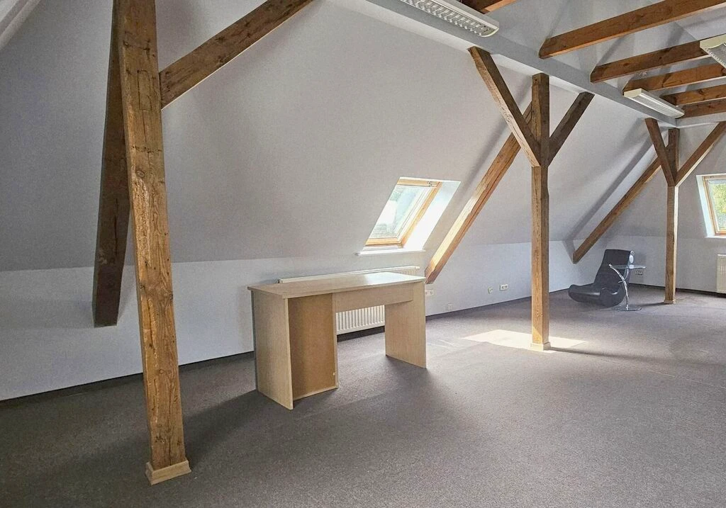 Offener Raum mit sichtbaren Holzbalken. Ca. 40 m² Nutzfläche mit Dachschrägen – ideal als Studio, Atelier oder zusätzlichen Wohnbereich.