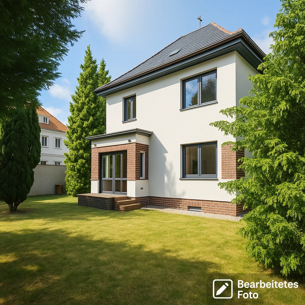 Das 531 m² große Grundstück in quadratischer Form ist ansprechend angelegt. Auf dem Gelände befindet sich ein freistehender Garagenbau mit Starkstromanschluss und Montagegrube, geeignet für einen Pkw. Darüber hinaus stehen drei weitere Stellplätze neben dem Haus sowie zusätzliche Parkmöglichkeiten auf der Straße zur Verfügung – gebührenfrei und ohne Bewohnerparkzone.