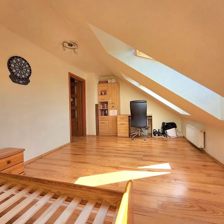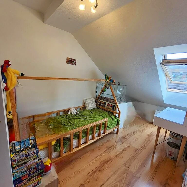 Entdecken Sie diese charmante, zweistöckige Wohnung mit einer Gesamtfläche von ca. 95 m² (davon 61 m² ohne Dachschrägen), gelegen im 3. und obersten Stockwerk eines gepflegten und ruhigen Mehrfamilienhauses aus dem Jahr 2004. Die ideale Wahl für Familien, die Komfort, Raum und eine durchdachte Raumaufteilung in gut angebundener Lage suchen.