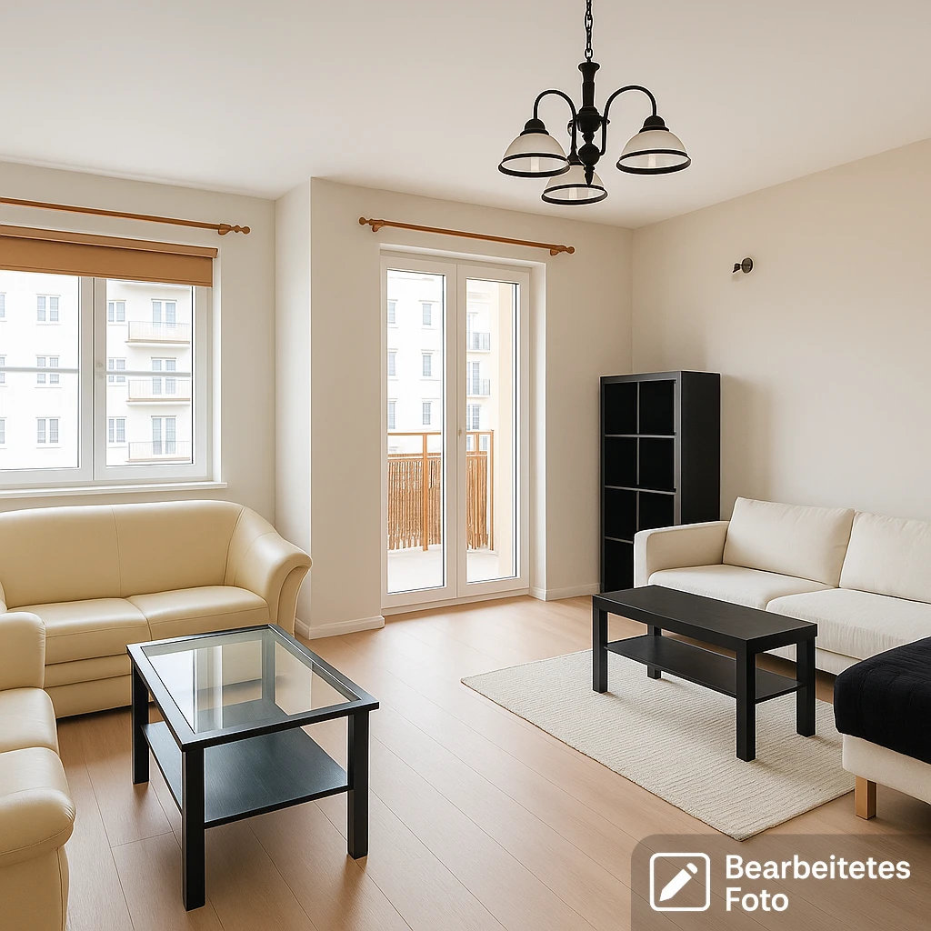 - Wohnzimmer – großzügig geschnitten mit direktem Zugang zum Balkon, der zum ruhigen Innenhof ausgerichtet ist. Der Raum ist durch elegante Schiebetüren vom Flur getrennt.