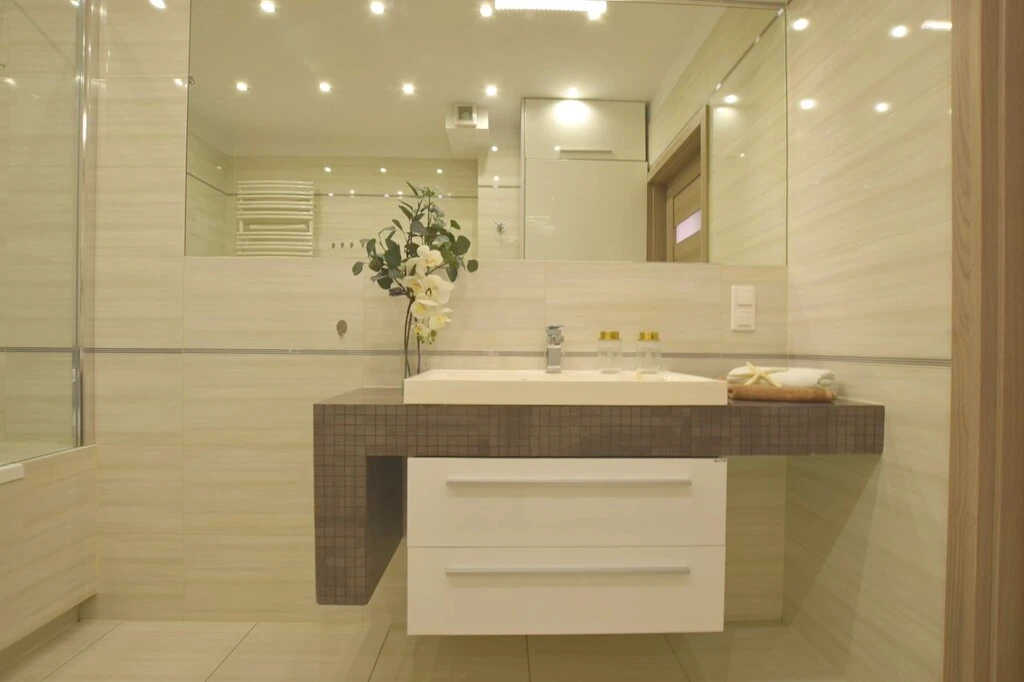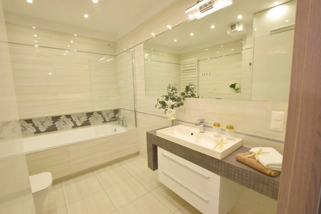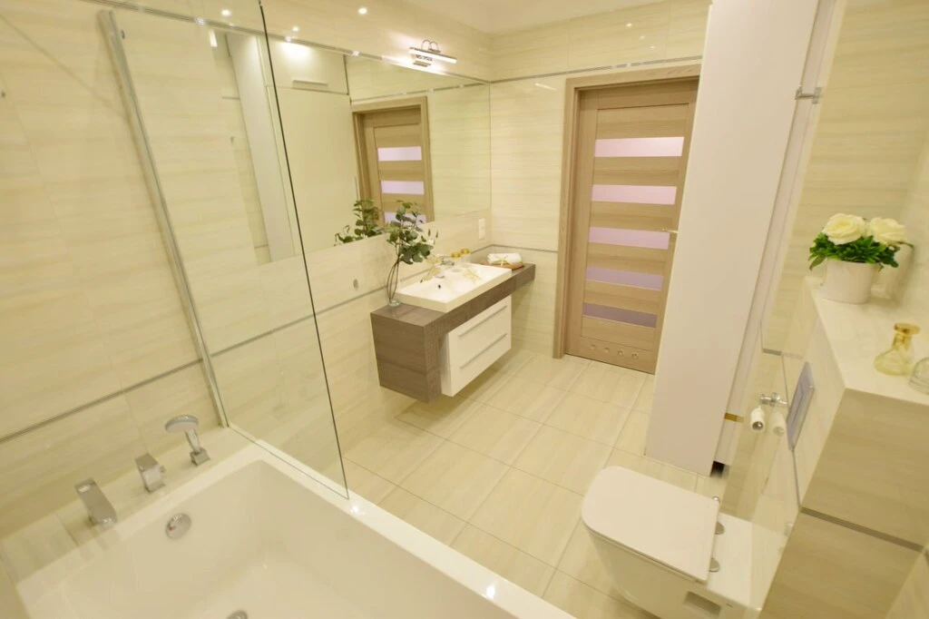 - Modernes Badezimmer mit Badewanne und Toilette