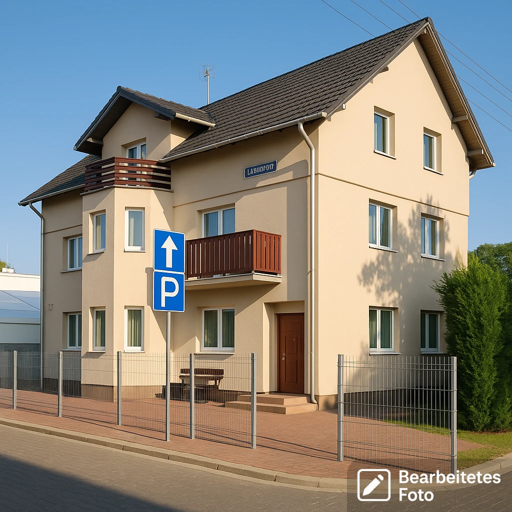 Das Anwesen befindet sich auf einem eingezäunten Grundstück von 922 m² und umfasst ein dreigeschossiges Gästehaus sowie ein separates eingeschossiges Wohnhaus. Zusätzlich bietet es einen großzügigen Parkplatz für bis zu 10 Fahrzeuge – ideal für Gäste und Besucher.