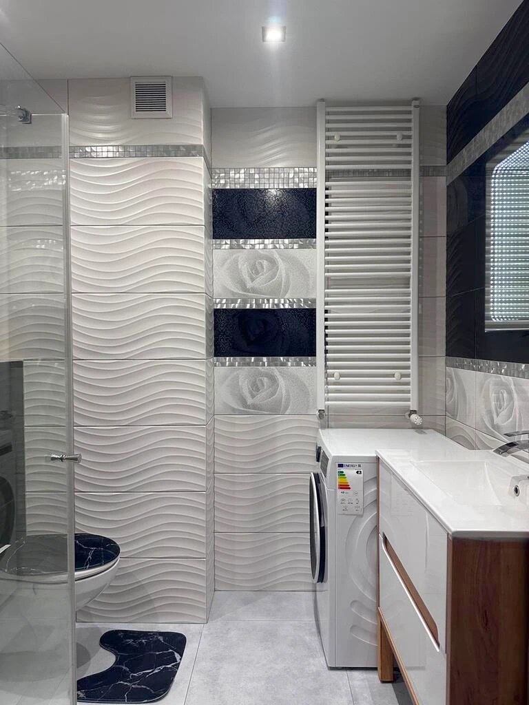 - Bad: 5,07 m² – ausgestattet mit Handtuchheizkörper, WC, Waschbecken, Dusche, Waschmaschine