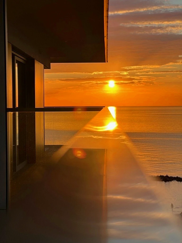 Diese elegante, lichtdurchflutete 2-Zimmer-Wohnung mit einer Fläche von 41,53 m² liegt im siebten Stock (von insgesamt acht Stockwerken) – nur ein Stockwerk unter der Dachterrasse. Große Fenster mit Ostausrichtung und ein großzügiger Balkon bieten einen herrlichen Blick auf das Meer.