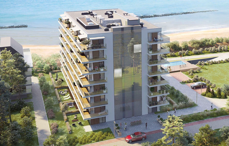Willkommen im modernen Apartmentgebäude Natural Solaris, das sich in einzigartiger Lage direkt an den Dünen und am Sandstrand von Darłówko befindet – dem charmanten Küstenviertel der Stadt Darłowo an der polnischen Ostsee.