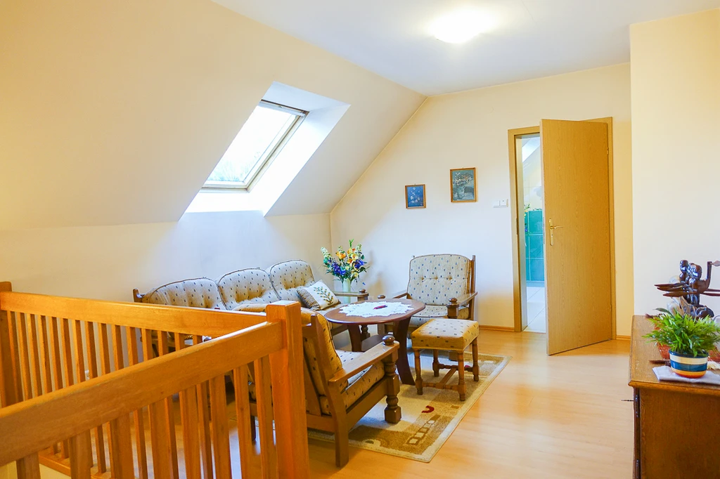 Im gesamten Obergeschoss sorgen moderne VELUX-Holzfenster – teilweise als Dachflächenfenster – für lichtdurchflutete Räume.