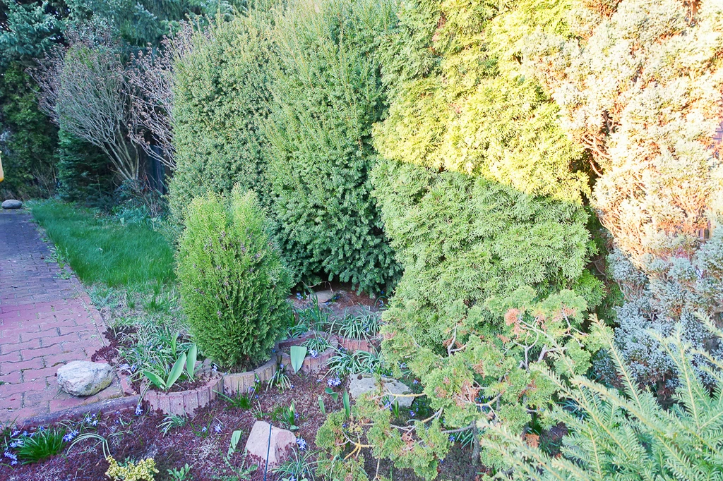 Das gepflegte Grundstück misst 492 m² und ist rechteckig geschnitten. Es ist vollständig umzäunt und verfügt über eine elektrisch gesteuerte Einfahrt. Im schön angelegten Garten mit Sträuchern und Bäumen erwartet Sie Ruhe und Erholung. Eine großzügige, ca. 16 m² große Terrasse lädt zum Entspannen im Freien ein.