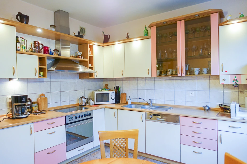 - Küche: Separate Küche mit einer Fläche von 13,5 m², ausgestattet mit Elektroherd, Backofen, Kühlschrank und Geschirrspüler