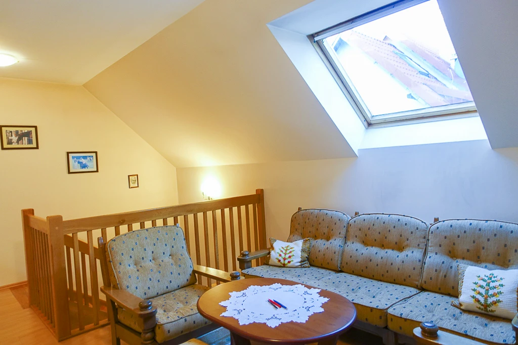 - Offener Wohnflur (18,5 m² / 20 m² Grundfläche) mit weiterem Dachfenster