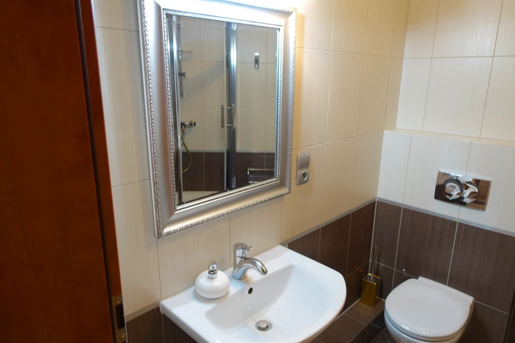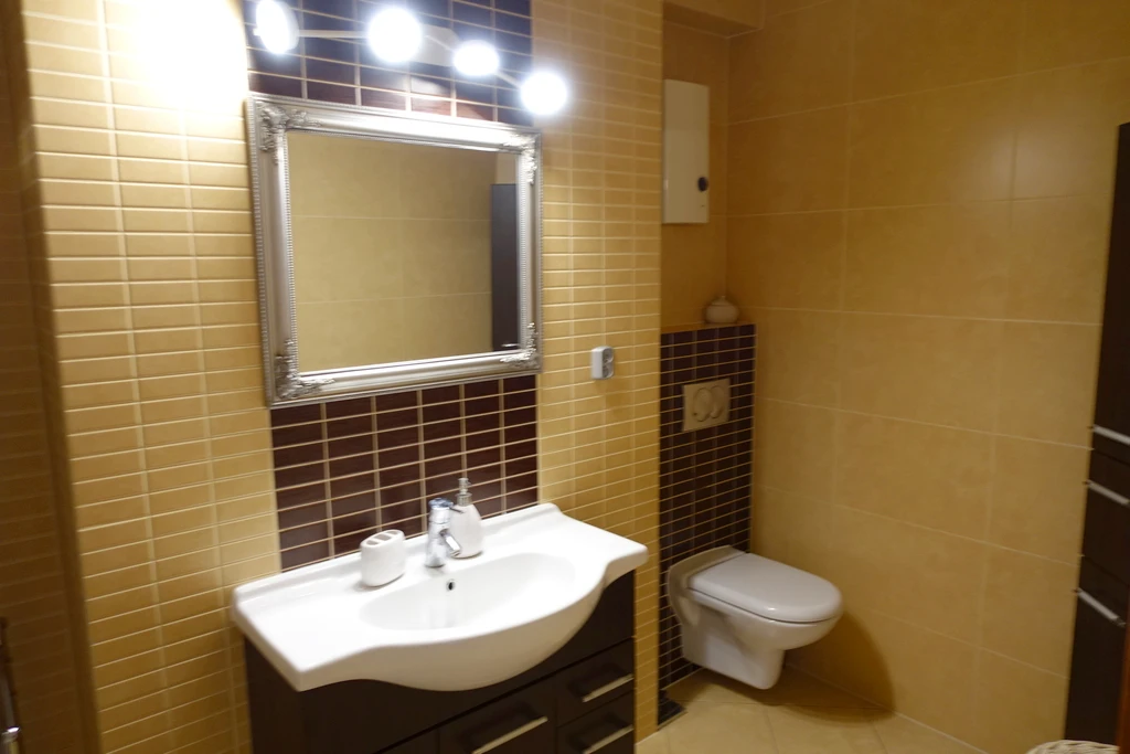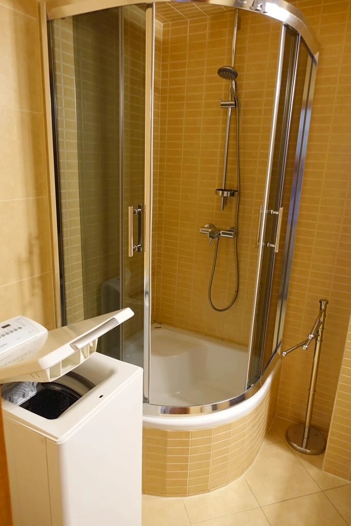 - Bad-Ausstattung: Waschbecken, Dusche, WC, Waschmaschine, Handtuchheizkörper