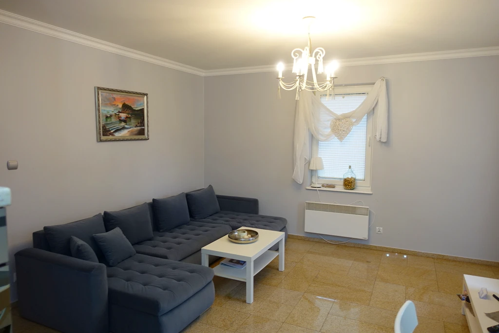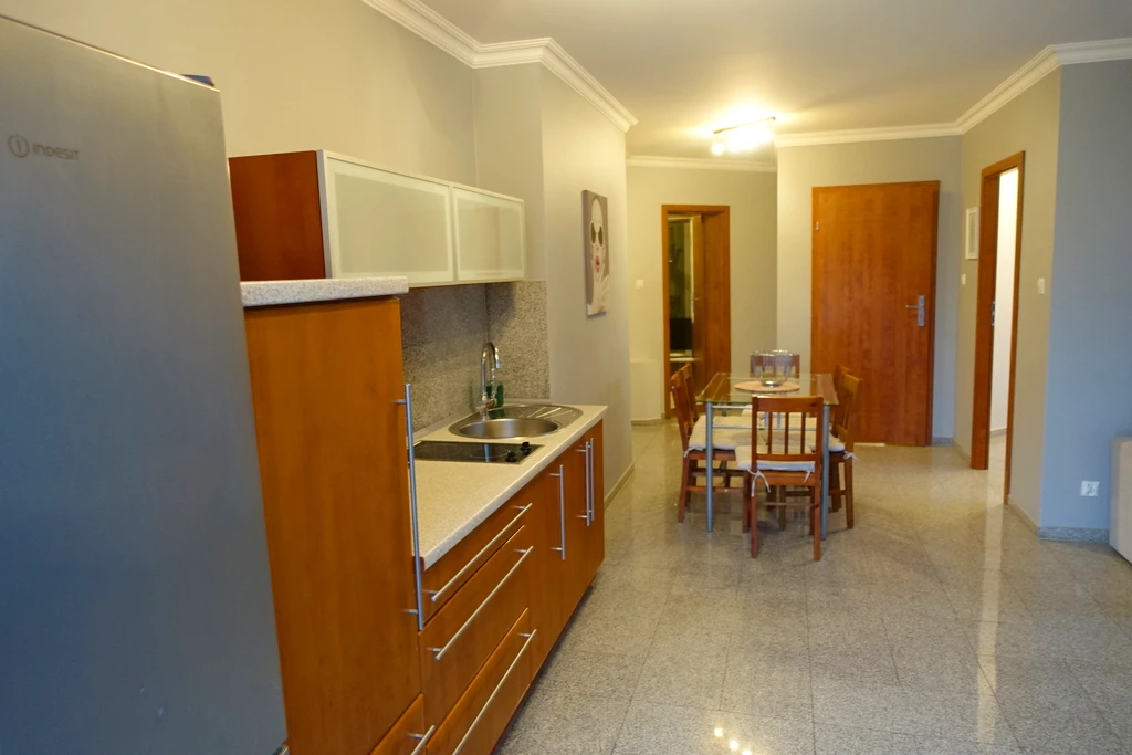 Das Apartment befindet sich in einem gepflegten, umzäunten Gebäude aus dem Jahr 2006, das ausschließlich Eigentümern vorbehaltene Parkmöglichkeiten bietet. Die Umgebung ist grün, ruhig und ideal für Erholung und Urlauber.