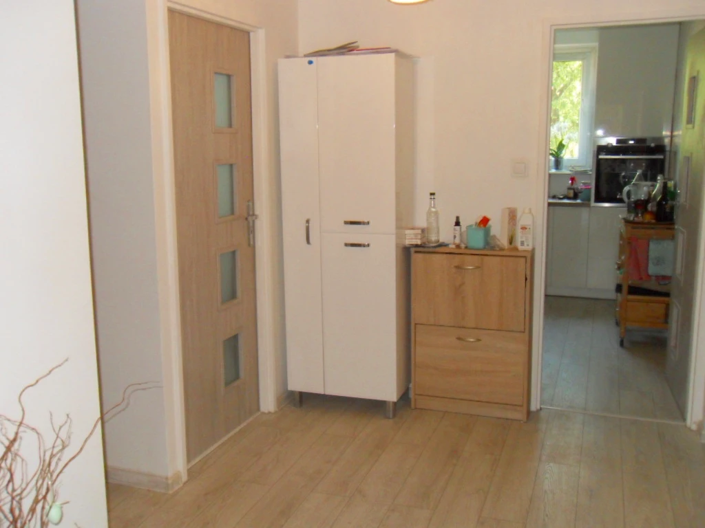 Zwei Flurbereiche bieten zusätzliche Staufläche – einer davon mit einer praktischen Einbauschrankwand über die gesamte Wandlänge. Neue Türen und moderne Kunststofffenster in der gesamten Wohnung runden das durchdachte Raumkonzept ab.