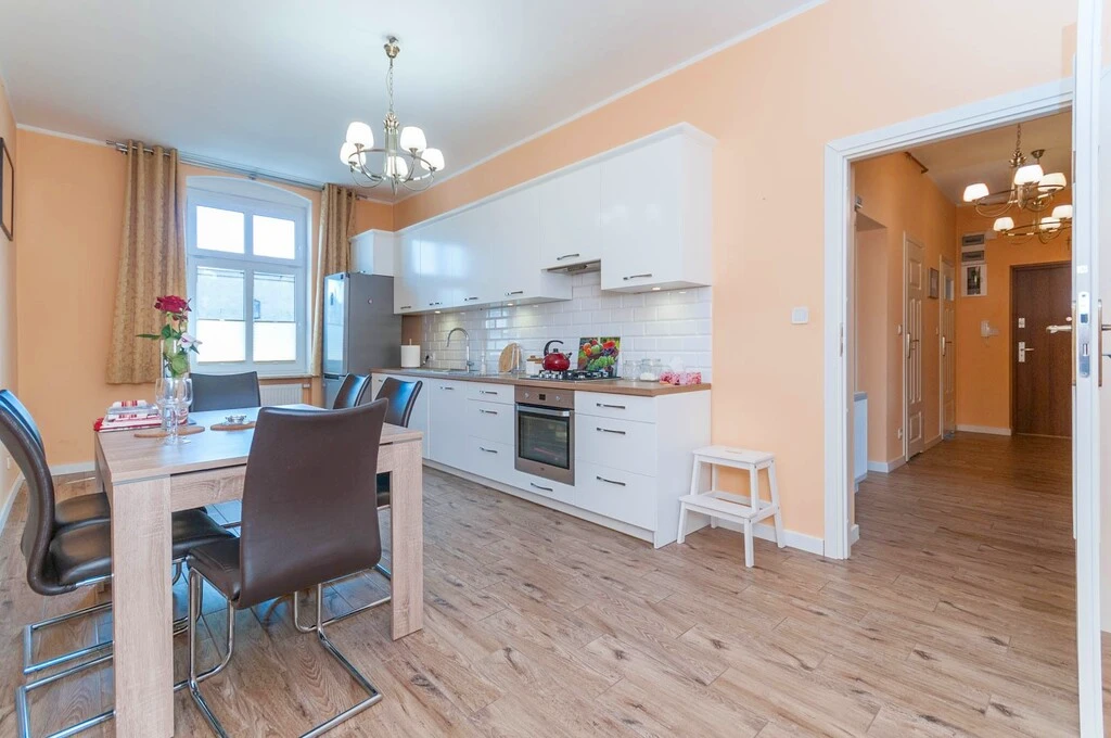 Diese stilvolle Altbauwohnung bietet eine seltene Kombination aus urbanem Lebensgefühl, Komfort und historischer Eleganz. Ideal für Singles, Paare oder alle, die das Leben in der Innenstadt Stettins in vollen Zügen genießen möchten.