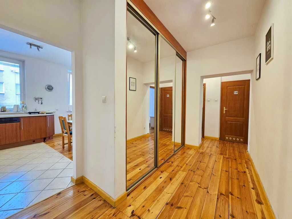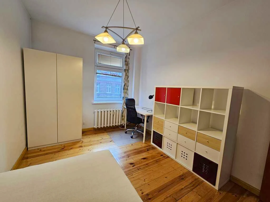 Willkommen in dieser attraktiven 3-Zimmer-Wohnung, gelegen in einem soliden Backsteingebäude aus dem Jahr 1992 – mitten im Stadtzentrum und dennoch in einer ruhigeren Seitenstraße in der Nähe der Krzywoustego- und Piastów-Straße.